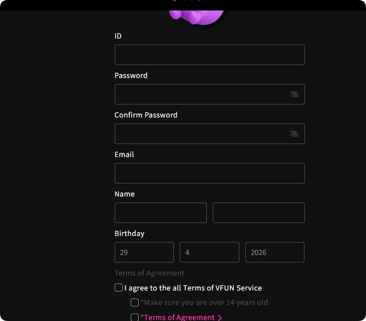 然后点击“Create a VFUN Account”按钮进入注册页面;